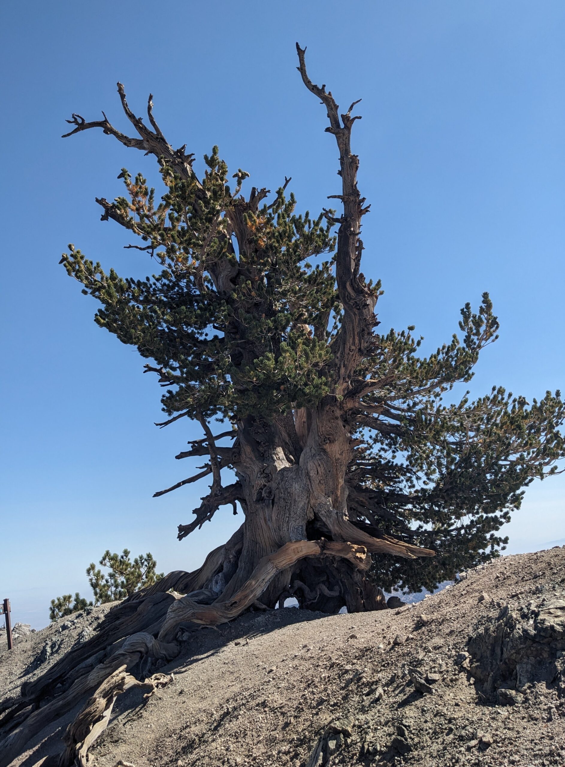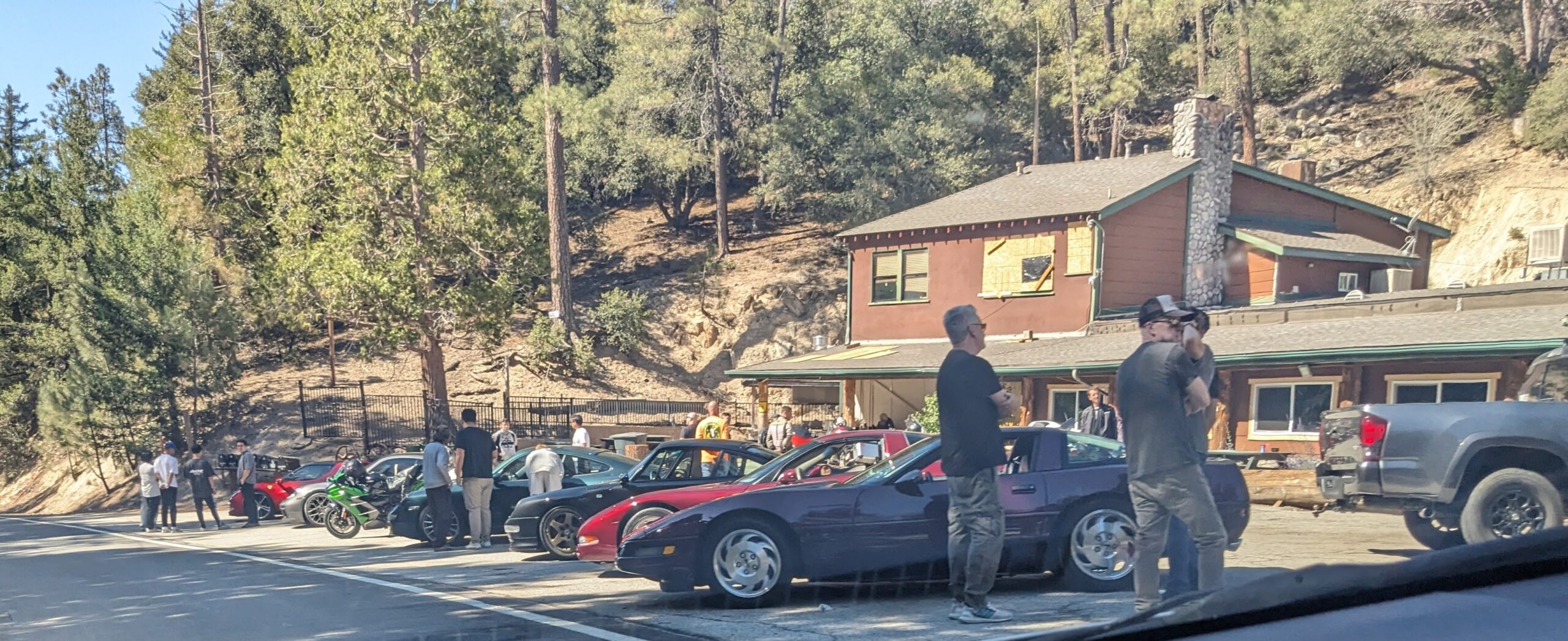 After about an hour of wrestling with the lugnut (the wrench was not “locking” on so it was impossible to get leverage) I was about to replace the other 4 and hobble down to Newcomb’s Ranch, an abandoned restaurant a few miles back where I knew car lovers gathered, so that I could at least get some assistance. Luckily, some guys in luxury sports cars pulled into the turnout about an hour after my phone call and helped “hammer” the wrench onto the lugnut with a rock, which finally proved successful. After thanking them, I put on the spare and decided to save the trip by going just one mile down the road further to Mt. Waterman for a six mile trail run before leaving the forest.