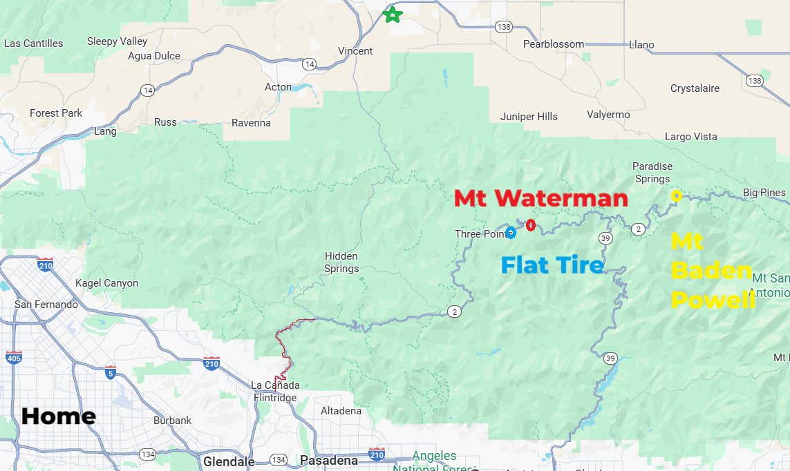 I took our truck to charge first, then over to La Canada to enter the forest on CA-2. It was unexpectedly closed between La Canada and Angeles Forest Highway (red line on map) and to go around would have meant me arriving at 11am or later, so I decided to postpone.